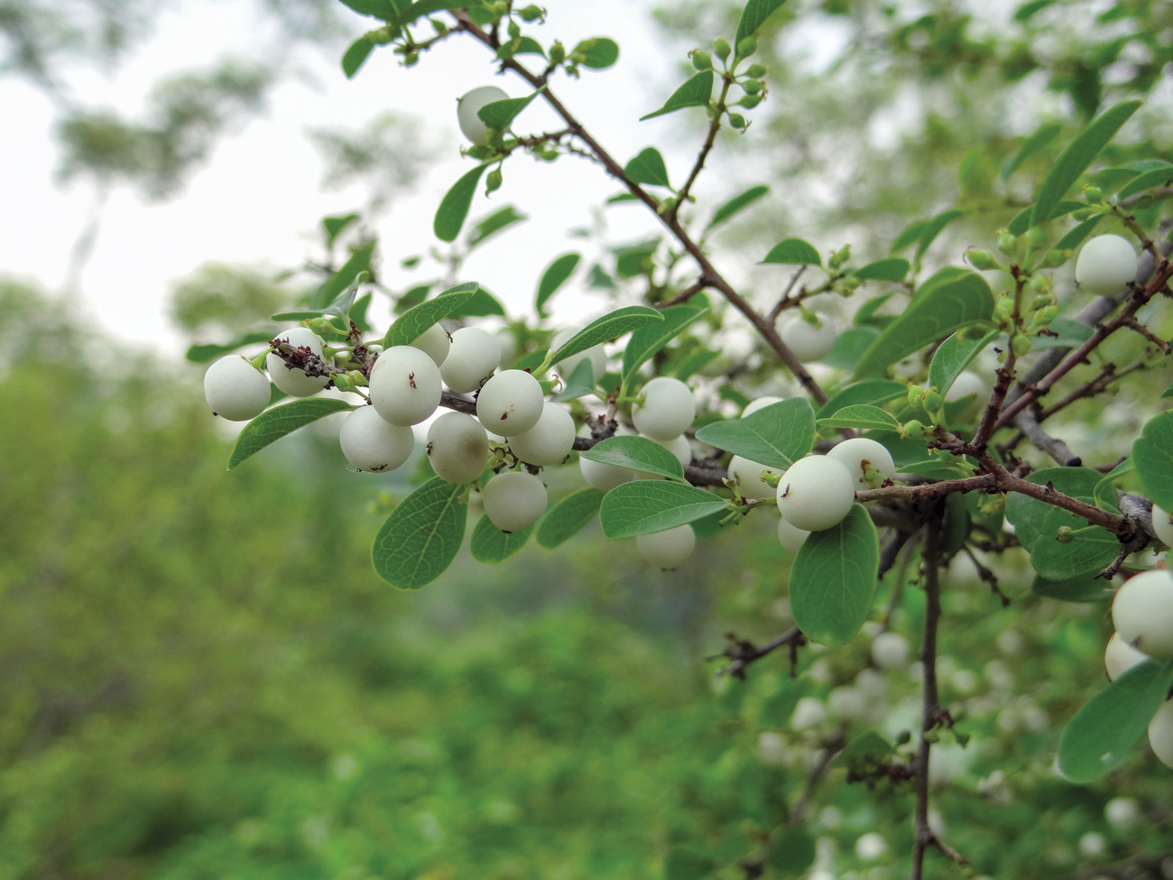 The arrestingly beautiful Indian snowberry Flueggea leucopyrus has small, wedge-shaped leaves, tough spiny branches, and displays exquisitely delicate white berries. Photo: Soham Kacker.