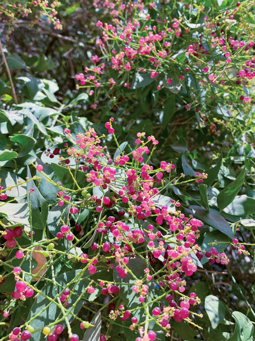 Over the years, and over innumerable walks in the Aravalli mountains around Delhi, encounters with a few specific plants remain fresh in my memory. The grey-skied post-monsoon excursion on which I encountered the arrestingly beautiful Indian snowberry Flueggea leucopyrus, with its small wedge-shaped leaves and its tough, spiny branches, decked up in the most delicate white berries imaginable. The day of my 18th birthday, which I chose to spend on the ridge with a dear friend, and our accidental discovery of a wizened and enchanting jaal tree Salvadora persica, which I returned to many times to observe in full flower, and then in a few weeks in fruit, which looked like perfectly carved ruby beads. Over the years, I have made many visits to a giant cuboid granite boulder, atop which, in shallow furrows in the rock, grew a dependable population of ray ferns Actiniopteris radiata – lying in wait each year for the monsoon to revive them from the brink of demise. Other trips were made to collect seeds from the wild mehendi bushes Lawsonia inermis in particular, in attempts to grow them in our garden – though they always seemed happier in the seemingly inhospitable rocky soils of the Aravallis.