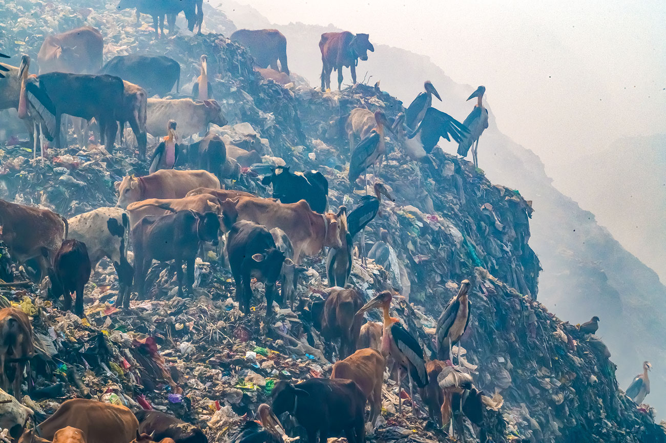 Lone sentinels amidst the refuse, these majestic Adjutant Storks Leptoptilos dubius gaze upon the wasteland with a sombre grace, embodying the silent resilience of creatures impacted by humanity's disregard for their home. Photo: Nikhil Devasar.