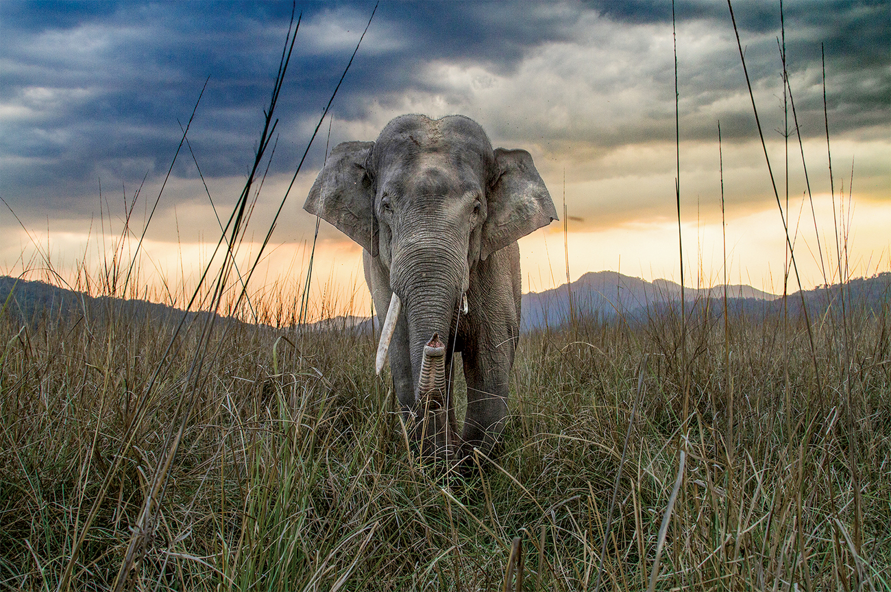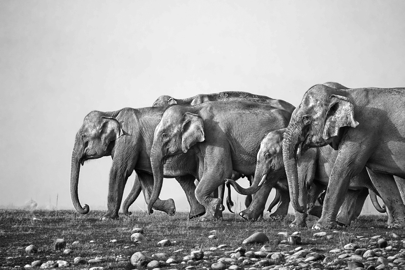 An elephant herd on the move. Drawing on generations of memory, the matriarch leads her herd to safer feeding grounds. Yet these ancient migrations are now fraught with danger, increasingly disrupted by human-dominated and fragmented habitats. Photo: Rajesh Bedi.