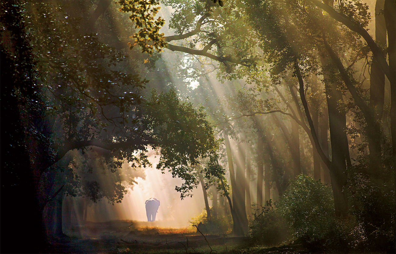 Amidst the breathtaking beauty of Corbett’s Sal forests. I chanced upon this mesmerising scene. The soft flow of early winter morning light filtering through the lush canopy and mist creates a truly magical atmosphere. Photo: Rajesh Bedi.