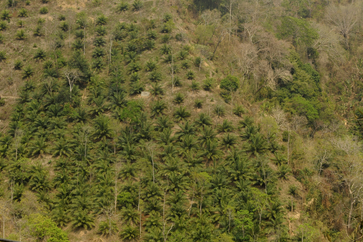 An oil palm plantation in Mizoram. Natural forests, which harbour a diverse mix of native tree species, are more reliable and effective for sequestering carbon than monocultures or low species tree plantations. Photo: T R Shankar Raman/CC-BY-SA 4.0.