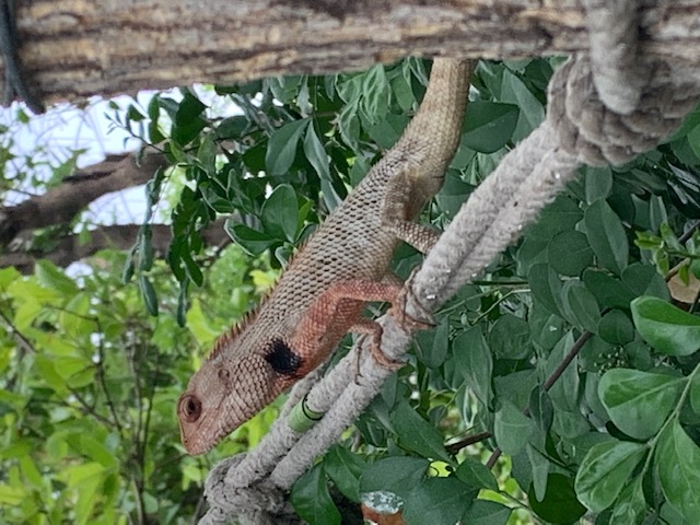 Bats darted quietly through the air at night, always immediately well camouflaged when they sat still on a tree. They weren’t very big, but they looked handsome! A big toad seemed to have comfortably made its home in our garden, and we were happy to host it. An oriental garden lizard with a bright orange torso and a black patch on its neck crept up a bael tree. We found out that it was mating season, and it was looking for a female. I was startled when I once even saw a gecko eat a smaller gecko! How unusual…