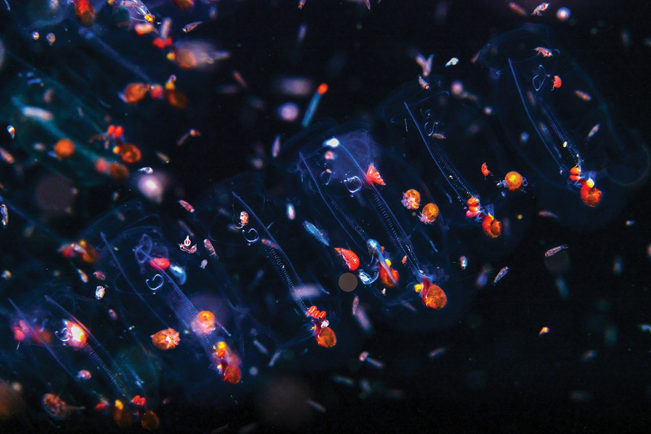 Smaller beings in the DVM, such as juvenile fish, hide from predators inside salps. Photo: Samya Sengupta/Sanctuary Photolibrary.