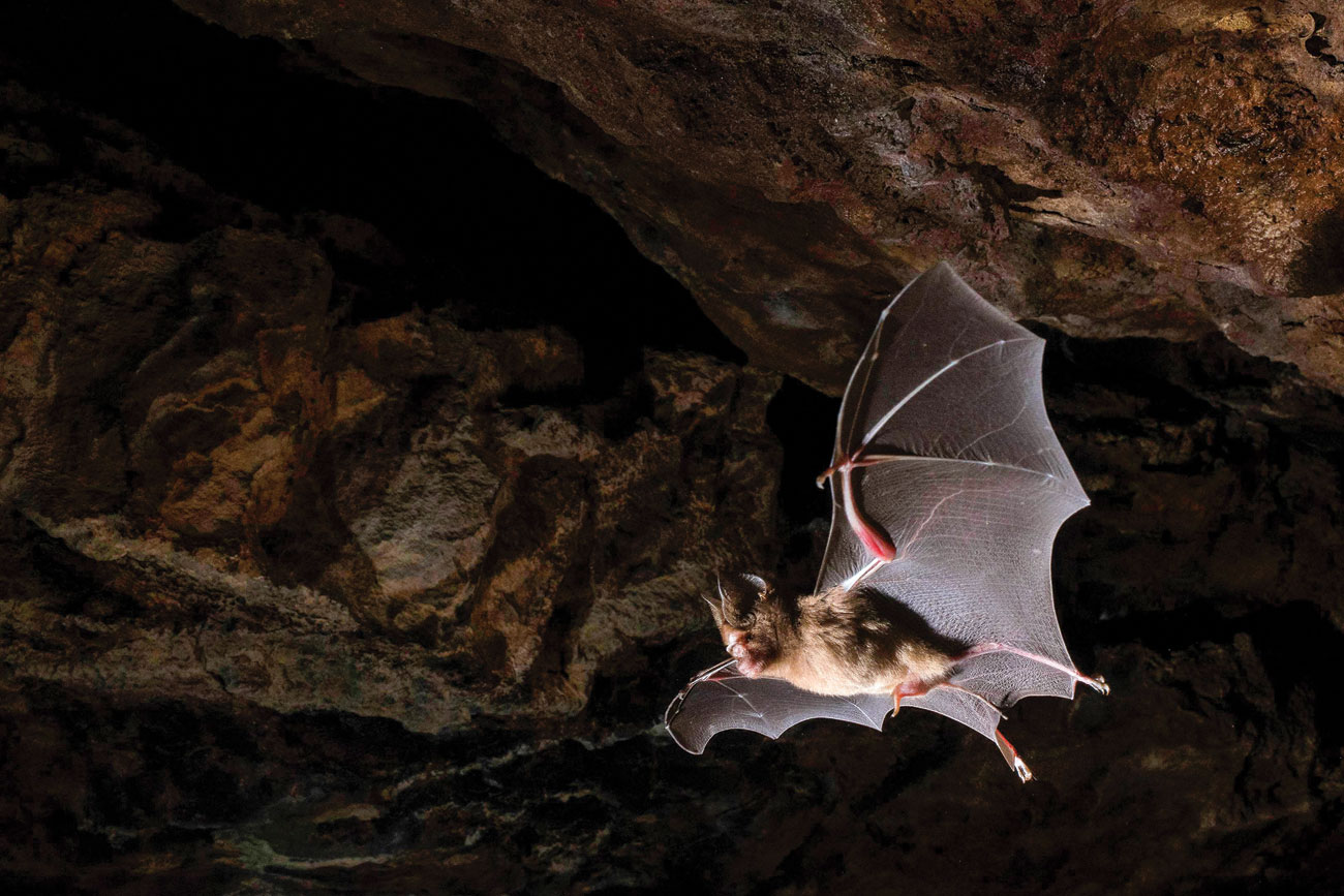 A male leaf-nosed bat Hipposideros sp. captured mid flight in a cave on the outskirts of Visakhapatnam, Andhra Pradesh. Photo: Anjani Kumar/Sanctuary Photolibrary.