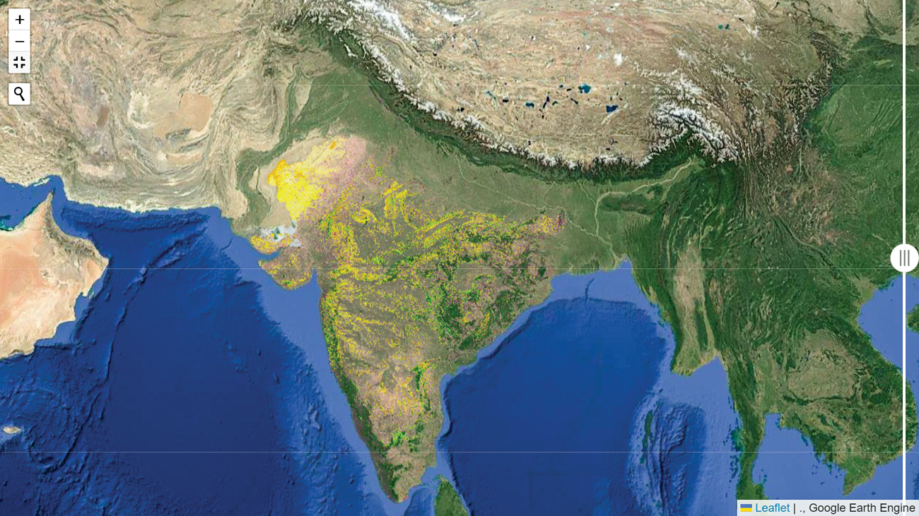 By using refined categorisations, researchers have created a map of Open Natural Ecosystems in India that reveals the larger extent of these ecosystems than can be found in most datasets. The lemon yellow represents savanna-grasslands. Photo:Madhusudan, Koulgi and Vanak 2023.