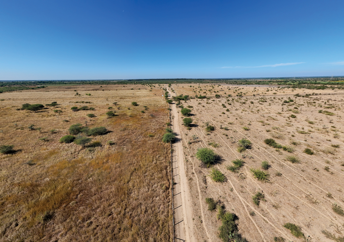 The Corbett Foundation has restored ~400 acres of grassland in Abdasa taluka of Kutchh, Gujarat, transforming Neltuma-infested and overgrazed land (above right side) into a thriving grassland habitat (above left side) supporting 300+ species and benefiting local communities. Photo:The Corbett Foundation.