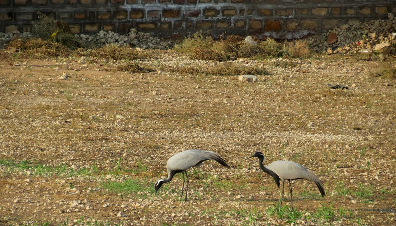 For close to two decades, veteran conservationist Sevaram Parihar has been protecting the thousands of Demoiselle Cranes that annually pass through the small village of Khichan in Rajasthan. This monsoon, Sevaram mobilised his village community to maintain and clean their 122 m. x 61 m. feeding ground. With support from local government authorities, the grounds were cleared of litter, and invasive weeds were uprooted. Demoiselle Cranes undertake a difficult migration, flying over the great Himalaya at a height of upto 7,925 m., from southern Europe, northern Africa and even Russia, to reach their humble wintering site in Khichan. Parihar is synonymous with these elegant cranes, and received a grant from the Mud on Boots Project in 2017 in recognition of his persistent conservation work.