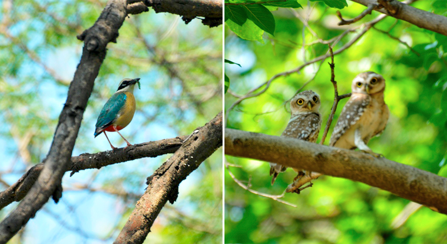 Indian Pitta and Spotted Owlet at Mangar Bani. Photo: Sunil Harsana.