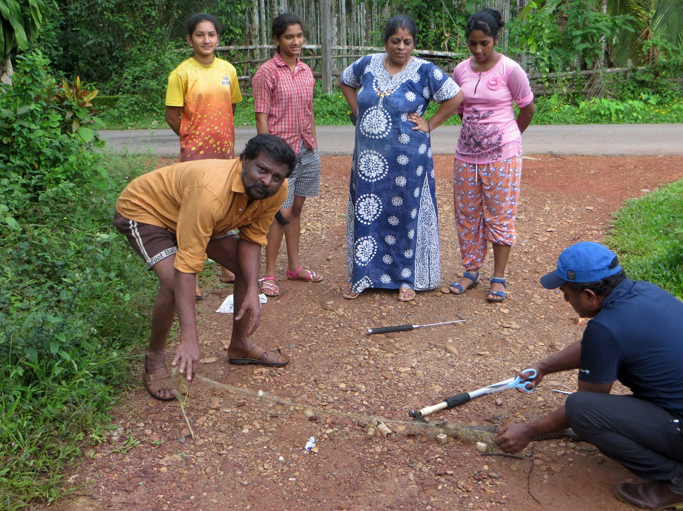 With social distancing protocols in mind, Project Leader Bhuvaneshwara H.C. has pressed pause on his outreach work, and shifted his focus to nurturing native saplings, attending wildlife rescue calls, and keeping tabs on and reporting illegal activities in the forest. Recent rescues have included a checkered keelback that was caught in a fishing net, and an Oriental Darter that found itself stuck in a home in Kulkunda village.