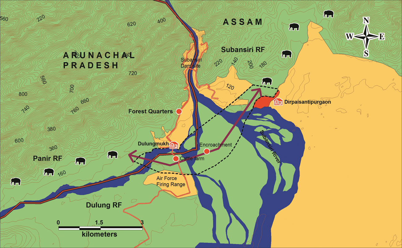In January 2024 the Wildlife Institute of India (WII) submitted an important report to the Standing Committee of the National Board for Wildlife (SCNBWL). This outlines a plan for ensuring safe passage for elephants between the Panir and Dulung Reserved Forests (RF) on the west bank in Arunachal Pradesh and Assam respectively, and Subansiri RF on the east bank of the river in Assam, downstream of the Subansiri Lower Project. This passage across the Subansiri river is known as the Dulung – Subansiri elephant corridor. The last recommendation of this report rings alarm bells: “Drastic modulation of river flow does not appear conducive to the elephant corridor. Based on peaking scenarios shared by NHPC, it appears that hydro-peaking would be similar to flash floods. Thus, it could result in elephants (particularly calves) getting swept/separated away from the herds. A few incidents, such as calves getting swept in the river could possibly trigger behavioural avoidance in using the riverfront.