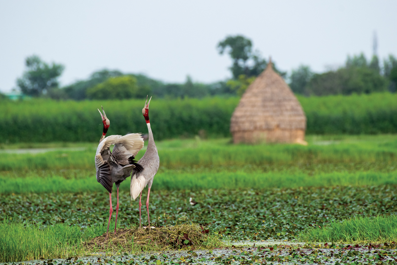 Furthermore, Sarus Mitras and local informers, who are tasked with monitoring each nesting site, prevent outside disturbances, and actively support farmers in whose fields the cranes nest. After fledglings have successfully dispersed from their fields, farmers are felicitated. “Their traditional knowledge, combined with scientific guidance, ensures that efforts to save this majestic bird are deeply rooted in the community itself,” says Ladekar.