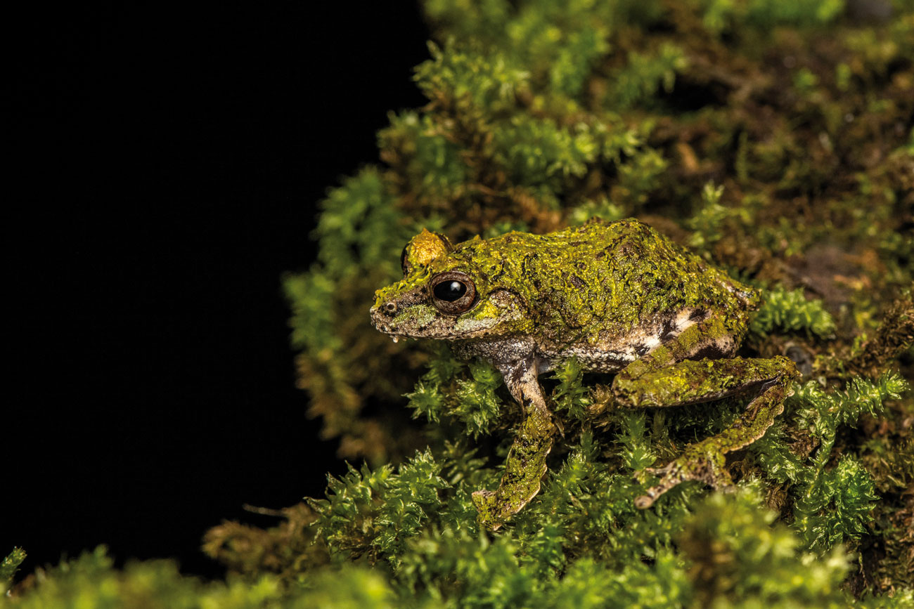 Kalpetta yellow bush frog Raorchestes nerostagona: The enigmatic, endangered Kalpetta yellow bush frog is a species shrouded in mystery. Its cryptic nature is a testament to its survival strategy as it resides high in the canopy of towering trees. Often, its presence is announced by a call that resembles an echoing water droplet, a sound that carries through the forest, while it remains unseen. This elusive frog possesses stunning camouflage, seamlessly blending into moss and lichen-laden tree barks. Its various colour forms enhance its capacity to disappear within the vibrant tapestry of the forest, requiring a keen naturalist’s eye to spot this rare gem.