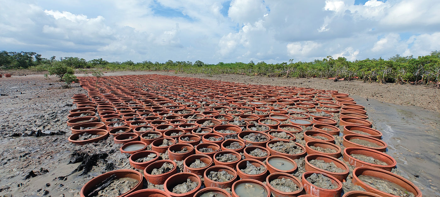 In between storms and forceful waves, the Sundarban faces massive shoreline erosion, making the landmass shrink. WWF-India has placed thousands of terracotta rings in human-inhabited as well as forested areas to stabilise the shoreline, reduce erosion, and maintain elevation. Photo: Neha Sinha.