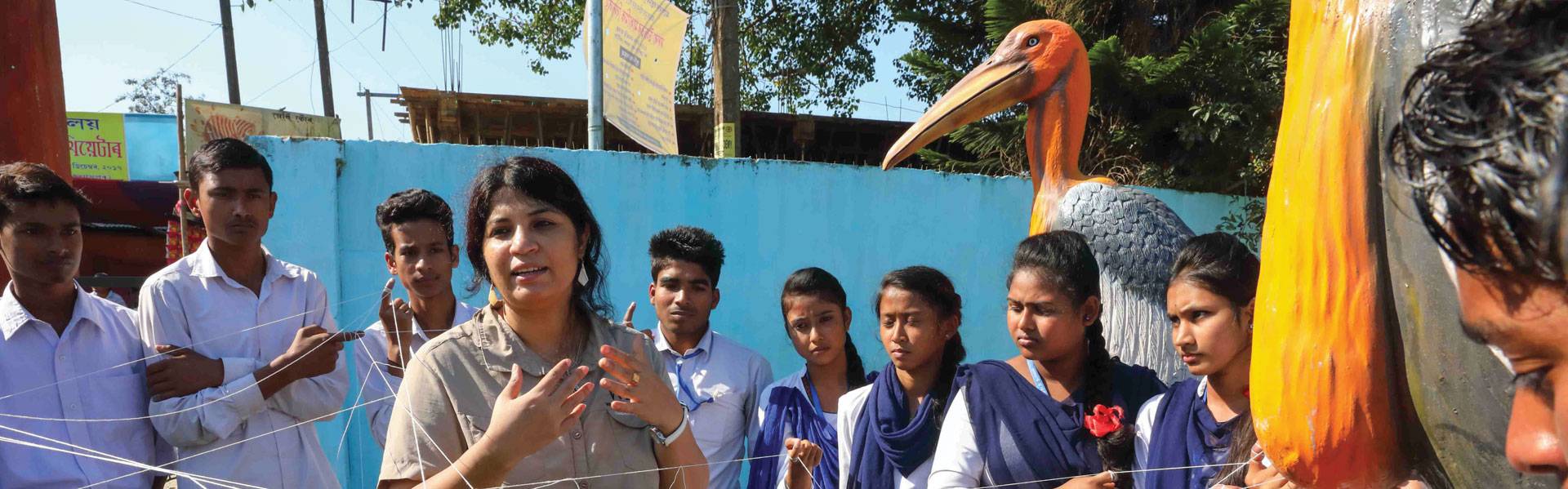 Purnima’s journey with the hargila began in 2007 when she chose it as the focus of her Ph.D. research in Kamrup district, Assam. During her studies, she discovered that the storks were abandoning their traditional wetlands for treetop nests near villages – only to find that these nesting trees were frequently cut down. Purnima responded by launching a community-based conservation initiative, involving local women who were determined to shift perceptions and to highlight the endangered bird’s ecological importance in maintaining environmental health.