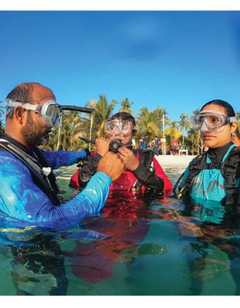 Shabeena and Mariyambi are among the first women from Lakshadweep to pursue doctoral studies in marine biodiversity. Their trailblazing journey has transformed their lives and paved the way for future generations of women in science in their community. Mariyambi and Shabeena, both mothers, are raising awareness about biodiversity, coral reef restoration, and the impacts of climate change on the island.