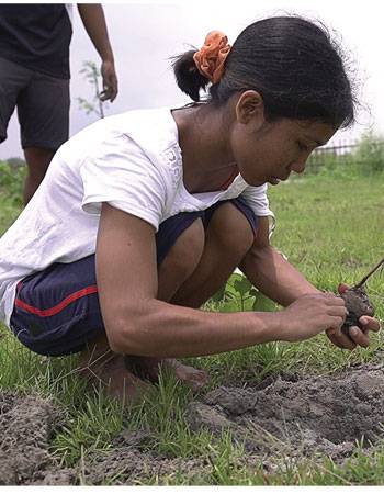 With her two younger brothers, cousins and friends she works day after day on their ambitious project to see a natural forest of one million trees emerge as a way of assuring a home to wild species being edged out from Assam’s fast-vanishing wilds. With them in their mission are members of the Bihari, Mising, Ahom and other adivasi communities. Scattered among the lakhs of trees that have already established themselves are Bombax ceiba, mango, jackfruit, and Indian jujube. Undeterred by the frequent flooding in the area and the welcome rearranging that wild elephants tend to do, the group is happy to continue undeterred, knowing that the legacy gifted by her father will continue to grow because she will never give up.