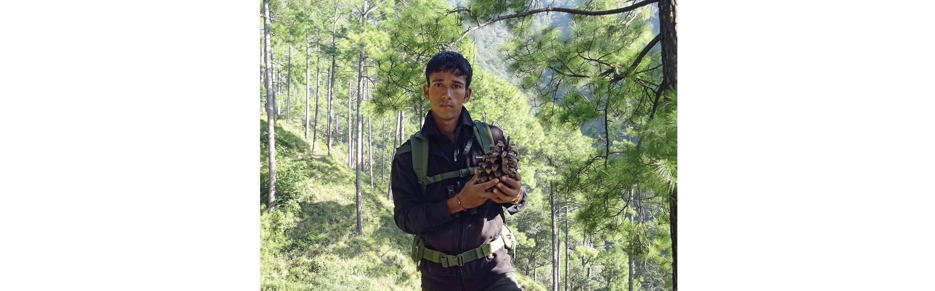 Virendra Singh Panwar Soft-spoken, but smitten by nature, this young lad from Kolti village in the Garhwal Himalaya must walk seven kilometres just to reach a motorable road from where he must travel another five kilometres to get to the college that he believes is his gateway to the future. When not trudging a quarter of a hundred kilometers to college and back, he tramps the paths of ‘his’ forest, to earn a modest livelihood as a nature guide.