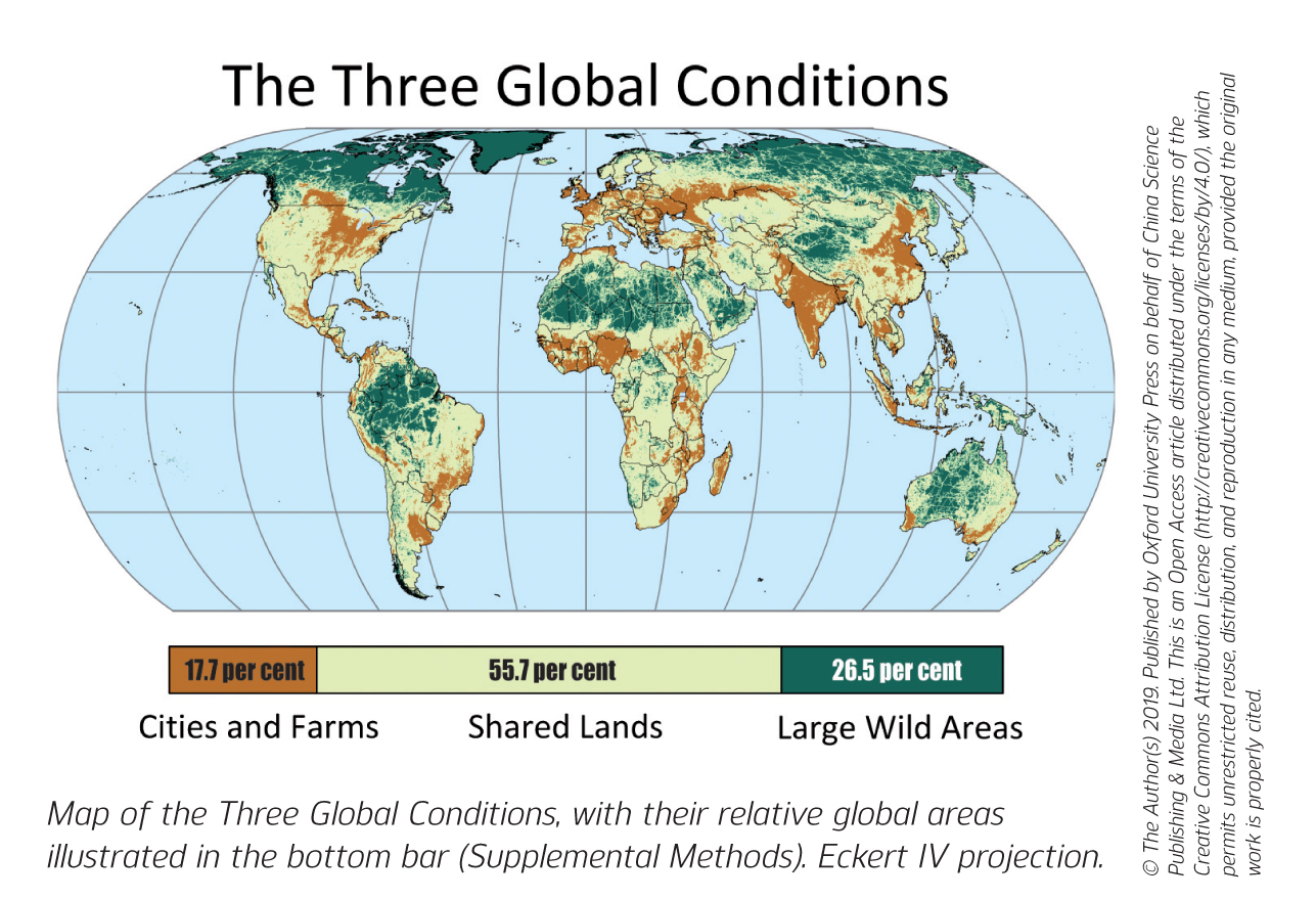 To get at this, we assessed what remains of nature in a broadly natural condition and meshed it with how humans have been using the world. We sought to establish a baseline of things as they are now in 2020 so that we might take positive steps to secure the areas that are still doing relatively well and make things better in the future. We found that the world has basically three conditions for taking action on nature conservation and sustainable human use. About 17 per cent of the world is heavily transformed by cities and farms, where over three quarters of us live. It is this area and the adjoining ocean areas that produce most of the world’s food. And it is here that most endangered species are found, most pollution is generated, and the vital natural service of crop pollination is at risk. We need to keep our cities compact to preserve our best farms and give people access to nature; reduce the amount of chemicals that get into our freshwater; and secure all remaining fragments and determinedly restore nature while reducing the amount of carbon dioxide and methane that we generate from farming.