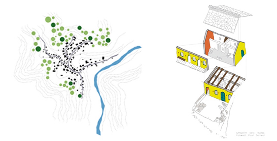 Most architects, gripped by the discourse on sustainability, would prefer to use local stone and timber in the enchanting Himalayan landscape. But why are the natives shifting to brick and concrete? Why are the people, who have since ages built their own homes with chir logs and slate patthar (for important reasons of thermal insulation and fire resistance), accepting of a flat RCC roof and tiled walls? In Falswadi, they now rely on Bihari mistris to build them a ‘modern house’. It would be ignorant to dismiss this as their way of keeping pace with the advancing world and a result of exposure to the ‘outside’. We can only begin to answer this by tracing back to the times when the indigenous people of Garhwal and Kumaon had shared a deeply sacred and intelligent relationship with their surroundings. I say this in the past tense for that relationship has been mocked and exploited in irreversible ways by those in power. It makes us appreciate the slow and instinctive process of exchange with nature that simultaneously helped develop a bank of knowledge of what to take, when and how much. At the same time, it also fills us with rage on realising how insensitively an ancient symbiosis was disrupted.