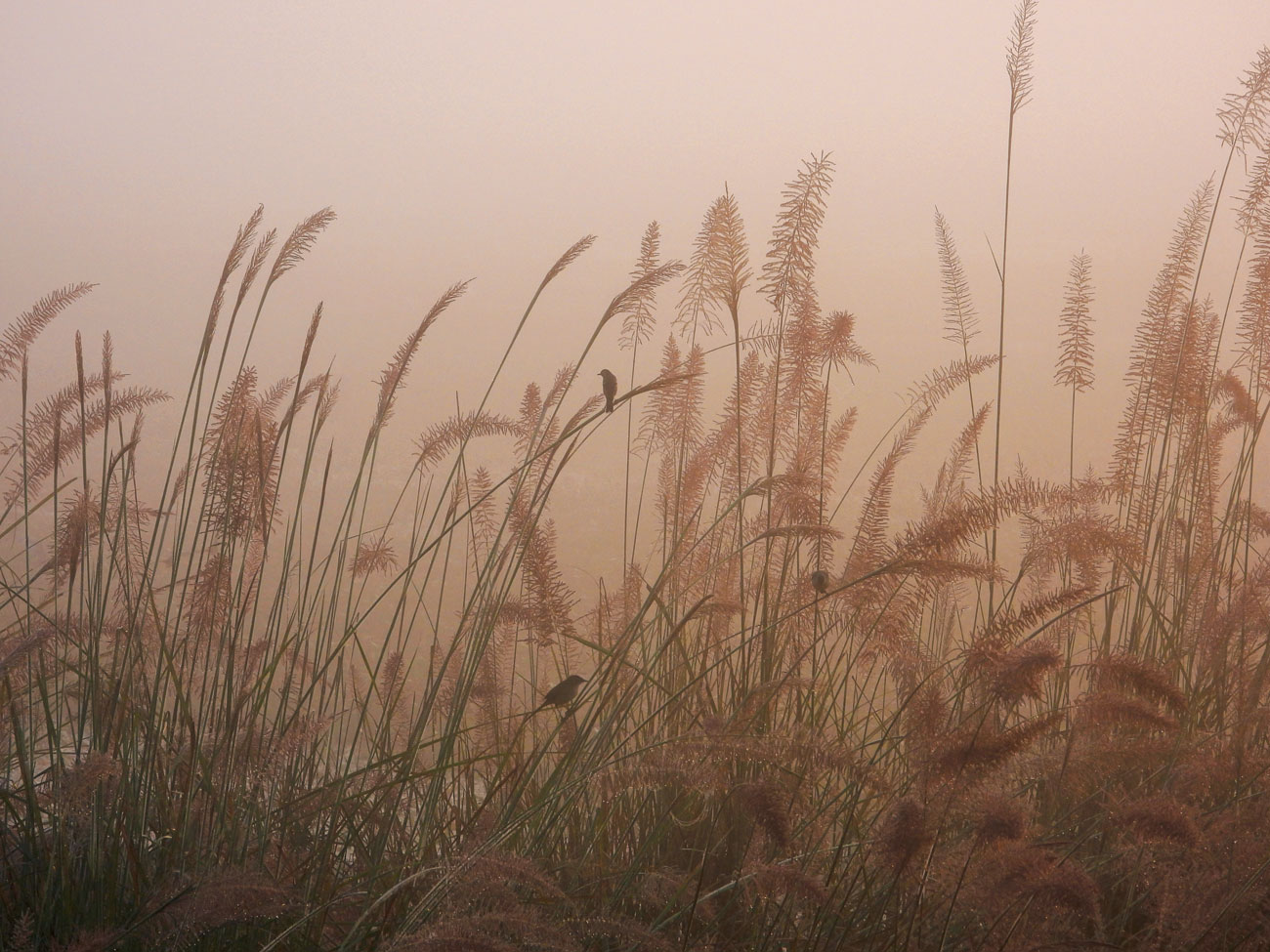 Tall grasses are very important for grassland specialists and winter migrants alike. Here a Striated Grassbird, a Bluethroat and a Citrine Wagtail are foraging in a patch of flowering Narenga porphyrocoma. Photo: Kaushik Sarkar.