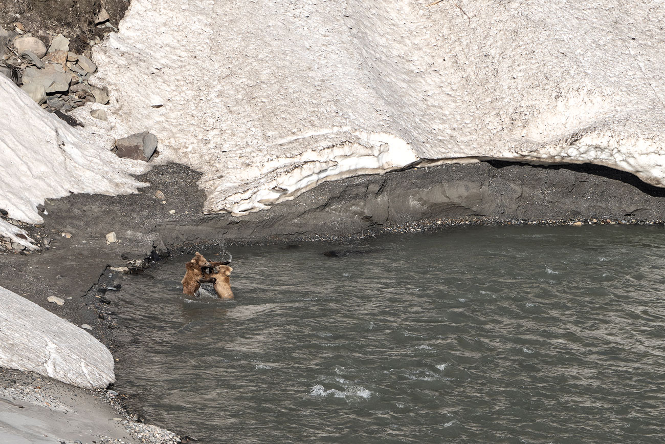 In April 2022, on account of heat waves in the region, these Himalayan brown bear cubs descended to the Chenab (Chandrabhaga) river and were seen frolicking in the waters. Photo: Shiv Kumar.