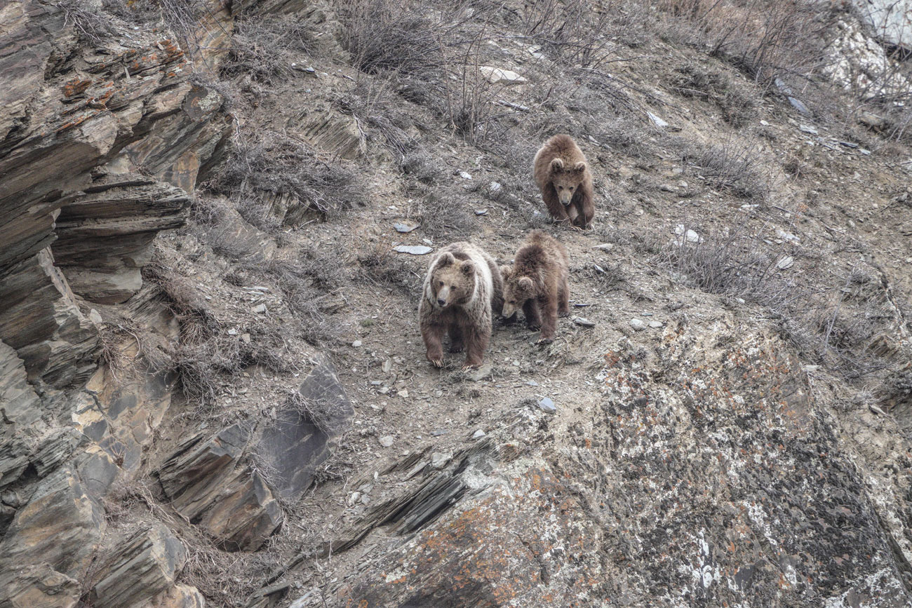 It was around mid-March this year, and the snow had melted in most regions of Lahaul in Himachal Pradesh. This was the season to spot the snow leopard, and we set out on most of our excursions with the hope of catching a glimpse of the elusive ghost of the mountains. One day our friend and avid birder Dipender Othangwa shared an intriguing rumour – a female brown bear had been spotted with two cubs on a cliff near a village in the Pattan region of Lahaul, during the late evening hours. A Himalayan brown bear sighting so early in the year piqued our attention instantly. A part of me was sceptical about this sighting, wondering if it was even true, and another part was definitely worried.
