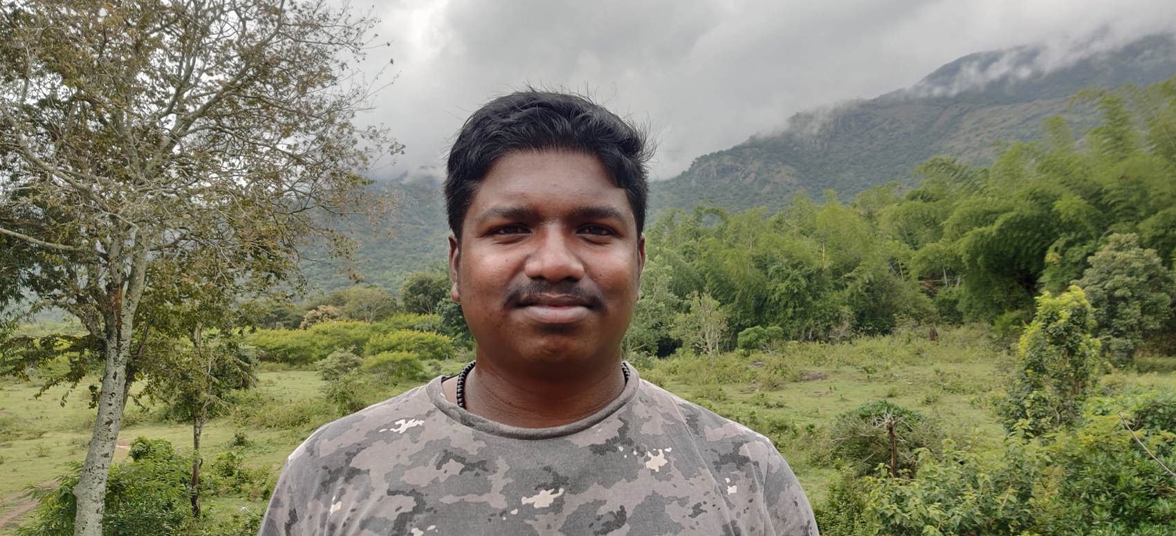 Rajesh, affectionately known as Sira, grew up in the Irula village of Thottalingi, a few kilometres from Masinagudi. In 2012, Sira joined Jungle Retreat. His intention was to learn English and to drive, but time spent in the company of the lodge guides fanned a latent interest in birds and wildlife. Initially mentored by older guides, it was not uncommon to find Sira sitting very still on the edges of the forest listening for bird calls. He took cues from birding experts that visited the lodge, and began to draw on his innate capacity for careful observation, no doubt inherited from his Irula bloodline. The son of a daily wage worker who put his three children through school by helping the Forest Department, Sira went on to comfortably converse and share his own knowledge with guests from around the world.