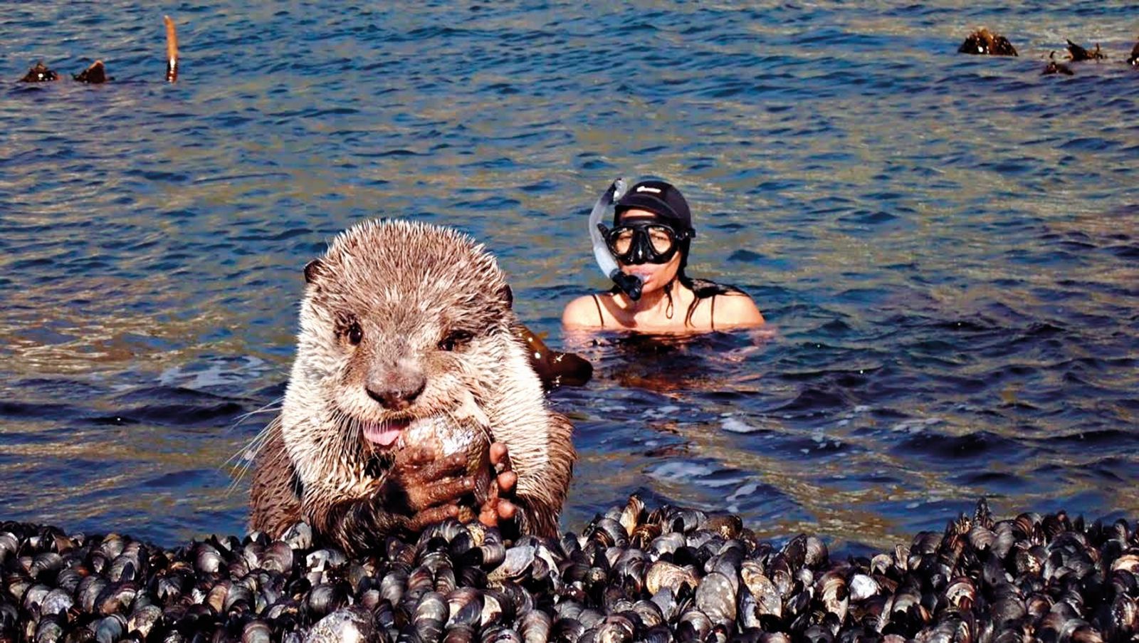 Swati watches a cape clawless otter feed on fish in False Bay, Cape Town. These otters are the second-largest freshwater species of otter, found mostly in southern Africa.