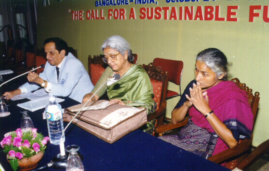 MAPS chairs a panel on the importance and possibilities of collaboration between human rights and conservation that featured activist Medha Patkar (right) at the sixth World Wilderness Congress (1998), the very first to be conducted in India, in Bengaluru. Photo: Vance Martin