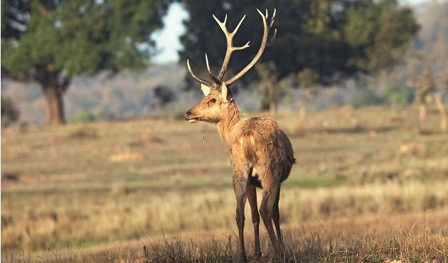 Atop the Bamni Dadar plateau – the only area in Kanha where one can spot the unique four-horned antelope endemic to India – is one of my favourite spots in the park. The viewpoint commanding the vast vista of Balaghat forests with the large meadows once occupied by forest villages – Bisanpura, Ghorela, Sondhar and others. Once the habitat of barasingha, human occupation of these grasslands had eradicated the only ecosystem niche to which they were adapted to. In the Mandla part of Kanha, apart from the central meadows, only two sizeable meadows could be evacuated for this dying deer – Sonph and Raunda. But on the Balaghat side of the Maikal Range, 18 meadows existed in the Mukki Range and more in Supkhar.
