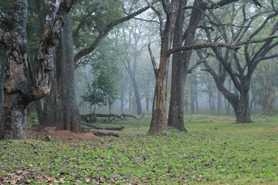 Then we moved on to the tiger road and the vehicle stopped at the sight of a King (black) Vulture perching on the forest floor, far away from the road. In the foreground, a few spotted deer were grazing and a little away from them was a pond. In the intervening space between the King Vulture and the deer, a wild boar was moving slowly. This scene, particularly the presence of vulture and the alarm call of the deer and common langur from a nearby area on our right made the driver Durgesh stop the vehicle. The kill with the predator must be inside the thickly-forested area in front of the vulture. The vulture was in all probability waiting for the predator to leave its kill after some time. Either we should have prevailed upon Durgesh to go as far as that place or waited for some time. After waiting for 10 minutes, he headed to range office. My grandson and his colleague were much disappointed.