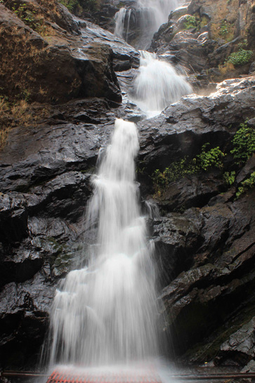 Sprawling across an area of 643.39 sq. km., Nagarahole is located at an altitude of 700-960 m. above MSL. It is bound by the Wayanad Wildlife Sanctuary in the southwest and by the Kabini river in the southeast, which is connected to Bandipur Tiger Reserve. It is bordered by the Devmachi, Mavukal and Anechowkur reserve forests in the north, while in the east and west are dry lands and private coffee plantations respectively. This landscape, varying from dry deciduous to moist deciduous interspersed with grassy swamps, carries a rich section of fauna and flora. In fact, Dr. Ullas Karanth chose this place for his path breaking studies on the tiger as the prey base for carnivores such as tigers, leopards and dholes was quite adequate. Over 330 species of avifauna have been recorded here, and out of these the notable ones are the Malabar Pied Hornbill, Malabar Trogon, Crested Serpent Eagle, Osprey, Grey Jungle Fowl, King Vulture and the critically endangered Long Billed and White Rumped Vultures. As the area receives abundant rainfall, we come across timber species such as rose wood Dalbergia latifolia, thadasu Grevia tilaefolia, ven teak Lagerstromia latifolia, pillamarudu Termanalia paniculata, Karimarudu Terminalia tomentosa and vengai Pterocarpus marsubium in the vicinity of the rest house itself. Deep inside the forest, we come across irumbakam Hopea parviflora, Bambusa arundinaceae, Poompathiri Sterospermum chelinoides and thani Terminalia bellarica. The reptilian list includes marsh crocodile, Indian terrapin, monitor lizard, chameleon, spectacled cobra, Russels viper, common krait, Indian rock python and a host of other snakes, lizard and turtle species.The park faces threats from ungulate poachers, man-made fires, and the illicit removal of forest produce, which bring about habitat degradation. Recently, it has been reported that sand mining is going on in the Saraswathy river near the reserve which is a great threat to the ecology of the park. Human-wildlife conflict has increased due to changes in demography and cropping patterns around the national park on the eastern fringes. On the 30th morning, there were no trips into the forest as there were no sufficient numbers of persons. Hence I approached Range Officer Lokesh Murthy to arrange for a special trip. He readily accepted our request and fixed it for the afternoon. He suggested that we visit the Iruppu falls in the meanwhile, which was at a distance of 20 k.m. from Nagarahole on the way to Kutta. We had to trek a distance of two kilometres over a hilly region strewn with big boulders to reach the falls. The cascade was thin and was tumbling down from a height of 51.2 m. The waterfall is actually the waters of the Lakshmana theertha river which flows to the northeast and then joins the Rama theertha river flowing in the northwest direction. These finally join river Cauvery river. After clicking some images pictures of the falls, we returned to Nagarahole for the special trip.