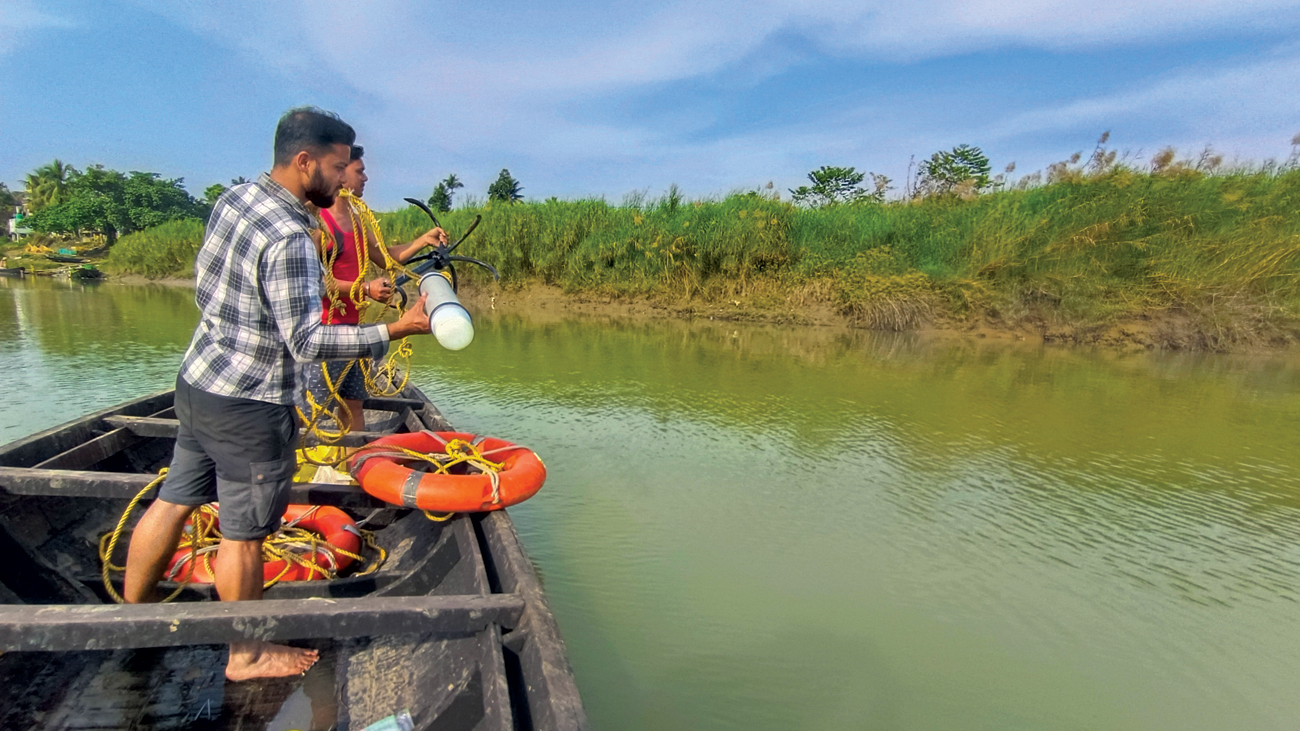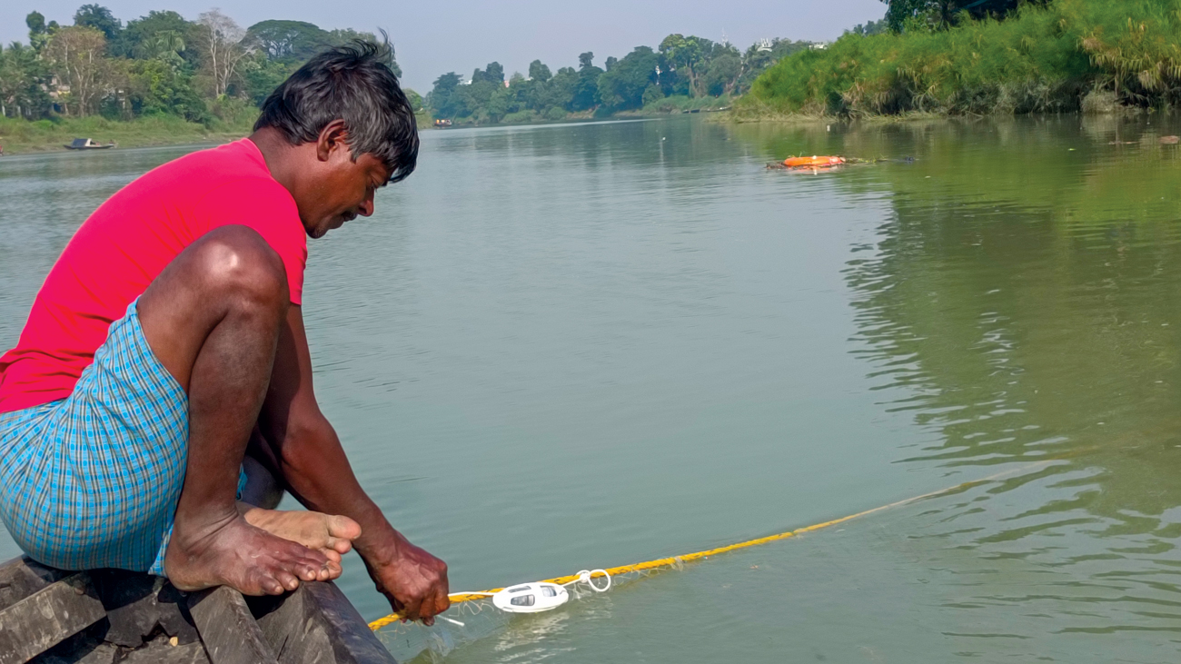 Between 2022 and 2024, I had the chance to be part of something meaningful. Alongside colleagues from WWF-India, the West Bengal Forest Department, and the Wildlife Institute of India, we launched a long-term study to test a ‘pinger’. It is a small, unassuming device – just a cylinder that emits high-frequency sound pulses underwater. The idea is simple: alert the dolphins before they get too close to fishing nets.