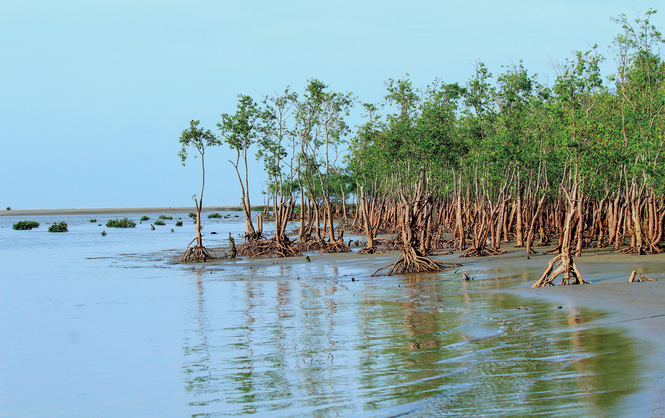 This mangrove stand appears to be readying itself to face climate change. Mangroves in states such as West Bengal and Odisha sequester carbon both in vegetation and sediments. There is vast untapped potential to at least double the carbon sequestration capacity of the country's ecosystems. Photo: Mrinal Mal/Sanctuary Photolibrary.