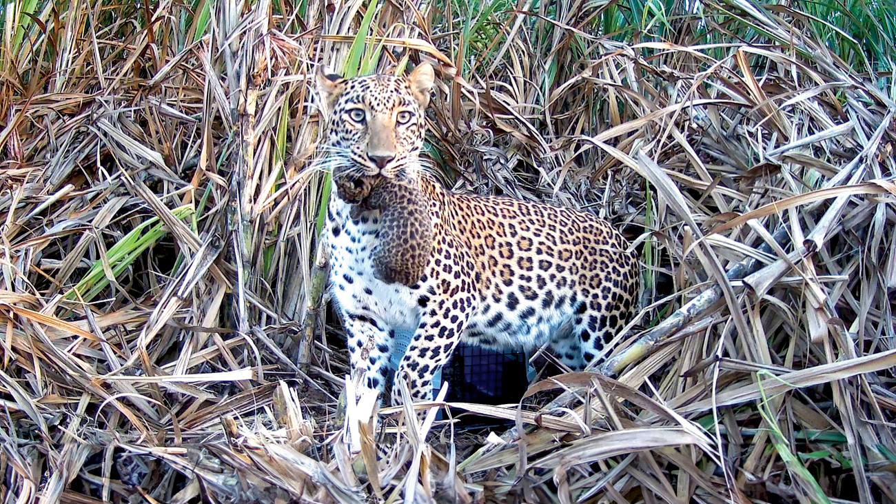 The team retreats to a safe distance. Using camera traps and thermal imaging, they watch quietly as the night unfolds. The sugarcane fields become a stage of silence, where every rustle might be the mother returning. Sometimes, she comes within hours. Sometimes, it takes the whole night. A mother leopard will not rush in blindly; she first scans the area, scent-marks nearby, and confirms that there is no threat. Her maternal instincts are powerful, but so is her caution.