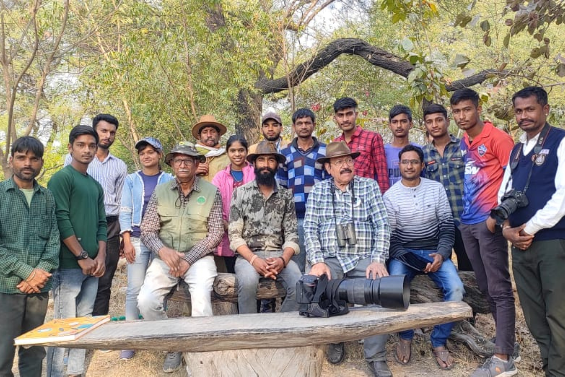 Dr. Satish Sharma, Bheru Lal, Asad Rahmani and Ajay Kumar Menaria with volunteers committed to safeguarding the Krishna Kareri wetland that has been rejuvenated with the Forest Department’s support. Several youth living near this wetland have been inspired by the power and joy of birdwatching and are training to be nature guides ín the future. Photo: Umesh Menaria.