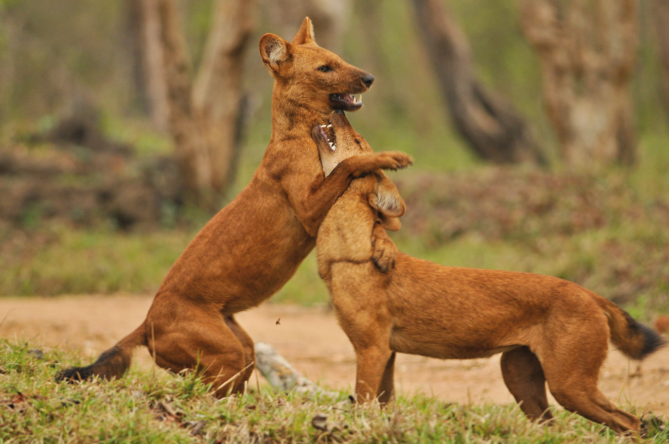 A pair of dholes in a playful mood. Photo: Satisha Satya/Sanctuary Photolibrary.
