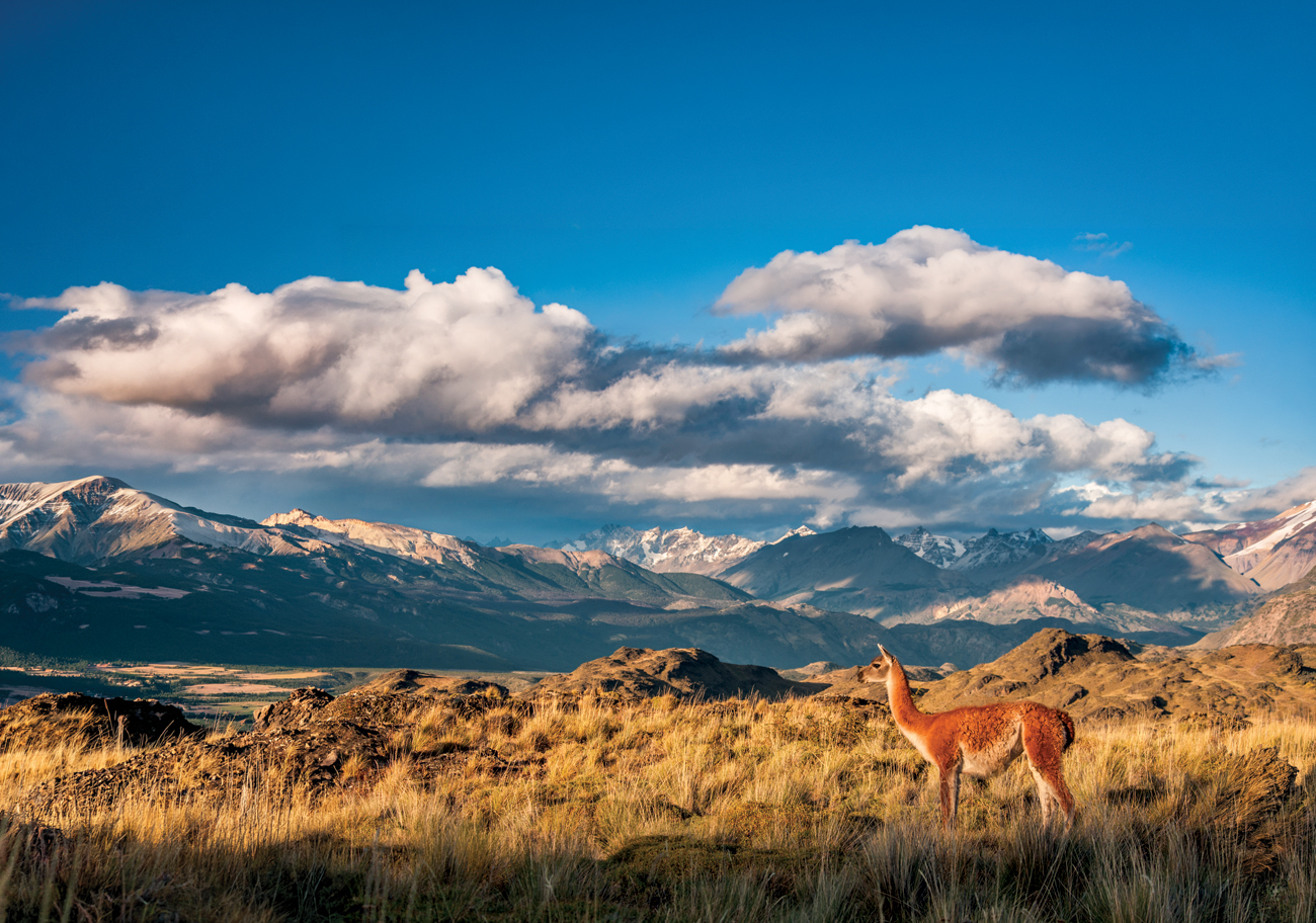 In Chile, Rewilding Chile has founded a chain of national parks together with the Chilean government. The Route of Parks of Patagonia looks to restore and protect keystone species such as guanacos (facing page), condors and pumas in complex, healthy ecosystems. Photo: Enonkishu Conservancy team in Kenya.