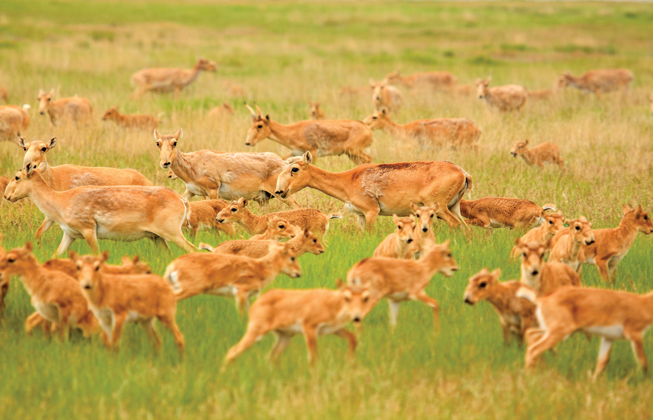 Once on the brink, the saiga antelope has made a remarkable comeback in Kazakhstan's grasslands. Sustained conservation efforts to restore their habitat have allowed their populations to rebound dramatically, offering one of the most hopeful wildlife recovery stories. Photo: Altyn Dala Conservation Initiative, Albert Salemgareyev.