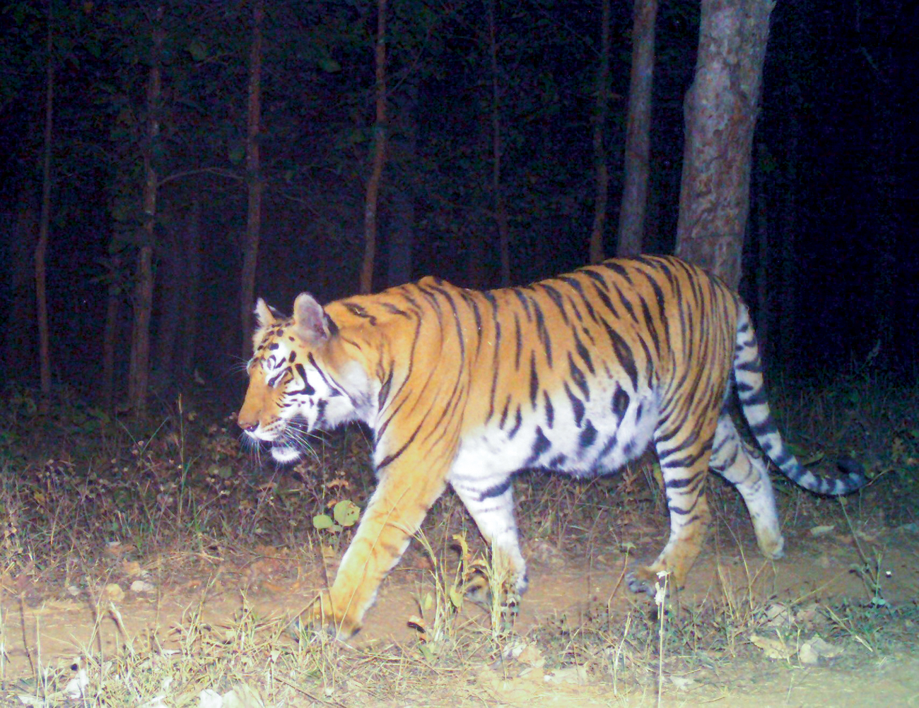 The Achanakmar Tiger Reserve in Chhattisgarh is part of the Achanakmar-Amarkantak Biosphere Reserve. Camera trap images from December 2023 recorded 10 tigers in ATR, including dispersing individuals from the Bandhavgarh and Kanha Tiger Reserves. Photo: Vishal Trehan/Sanctuary Photolibrary.