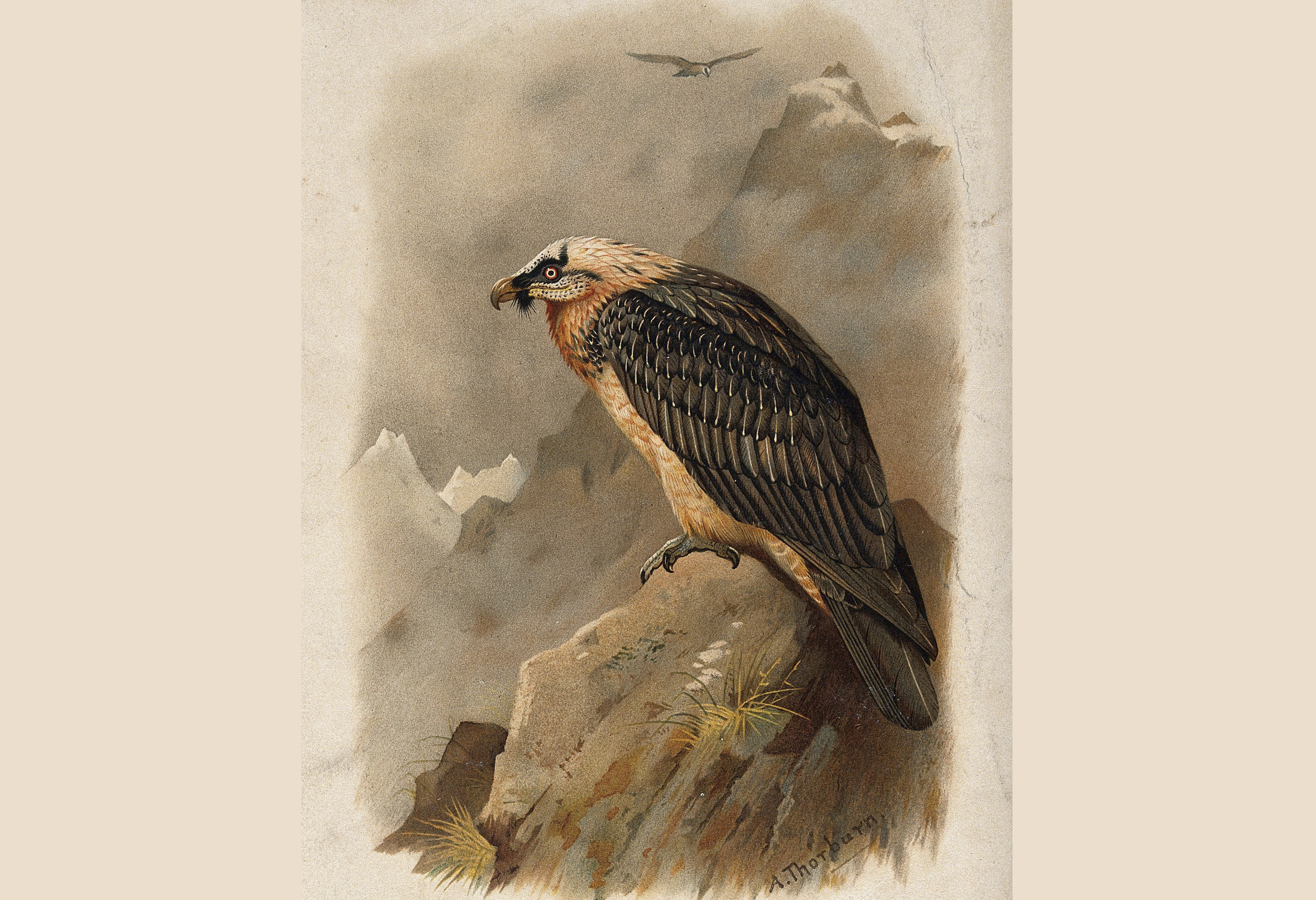 The Bearded Vulture or Lammergeier Gypaetus barbatus, is a resident avian, present in Himalayan habitats of J&K and Ladakh. It sports reddish-yellow and white feathers on its head and chest, while its wings and tail are an intense greyish black. Relatively small-headed, it has a thick neck and characteristic bristles below the beak giving the impression of a beard. Its most unique trait, however, is its feeding habits. It almost exclusively depends on bones, which can be digested by its strong gastric juices. The marrow that it gets to is also a highly nutritious source of energy. This is the world’s only species known to do so. This has caused the species to evolve differently from other vultures in that it is not ‘bald’ since it does not have blood and gore sticking to its head feathers. The Lammergeier forages over massive ranges, which may extend across 700 sq. km. in a day. It uses thermals to soar effortlessly in flight. When food is found, the bird strips the carcasses of bones, flies to considerable heights and drops the bones, sometimes repeatedly, until they shatter to expose the marrow within. The evolutionary advantage of its diet is the lack of competition for the food upon which it depends!