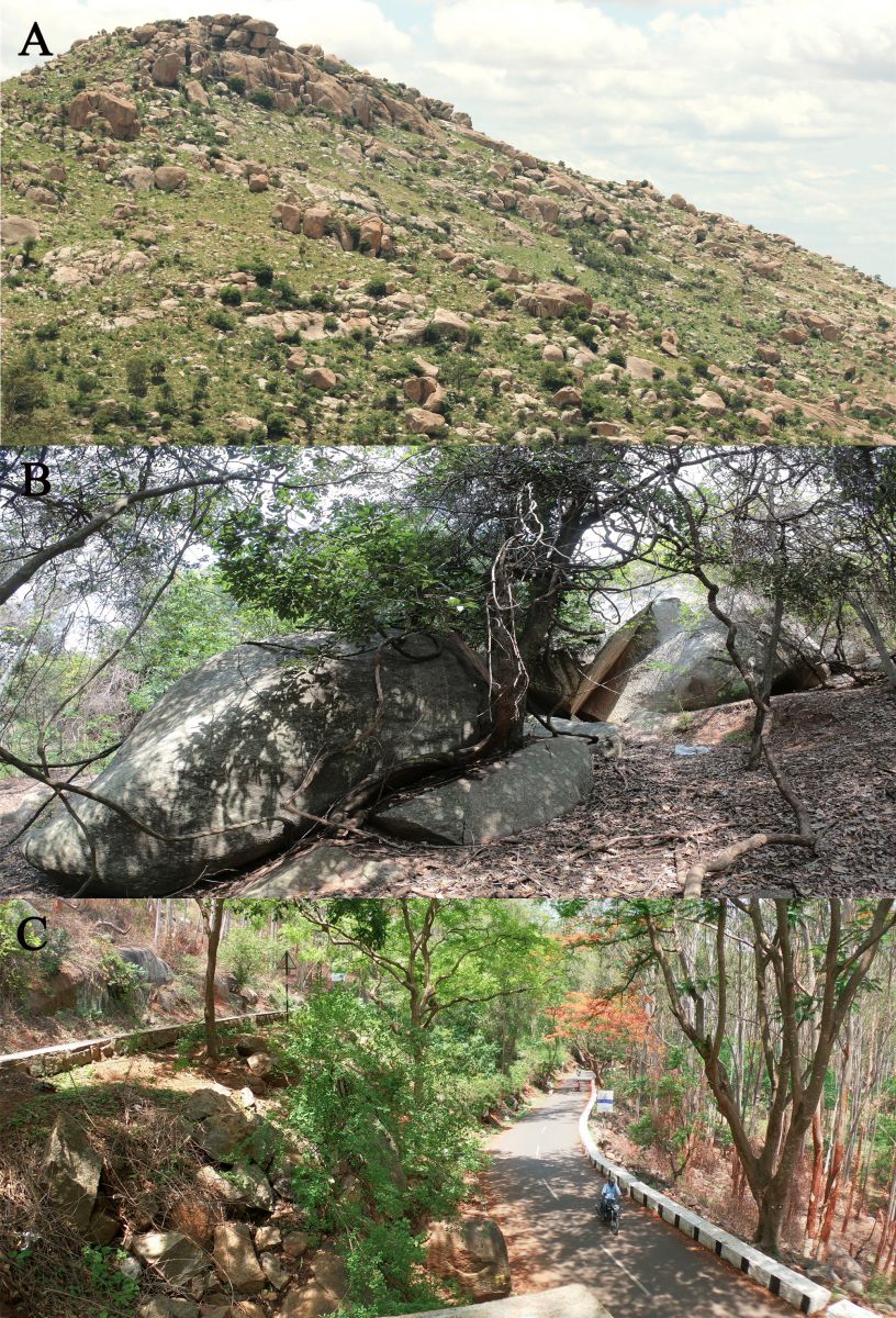 Habitats where the three species were found. From top: Kolar (bangara), Horsley Hills (graniticola) and Yelagiri (yelagiriensis). Photos by: Akshay Khandekar.