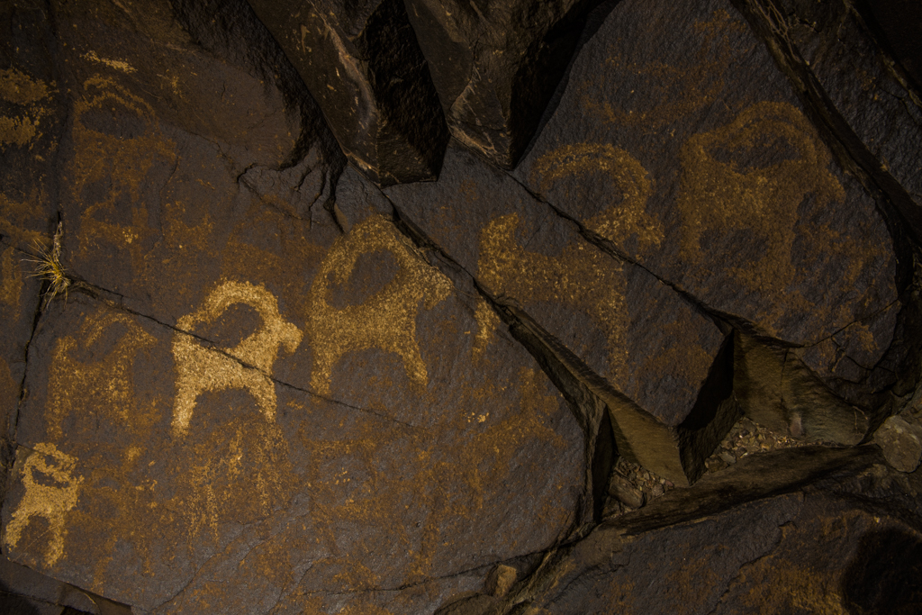 Petroglyphs, carved c. 5,000 years ago in Ladakh, depict scenes of humans, wildlife and livestock. Photo: Prasenjeet Yadav.