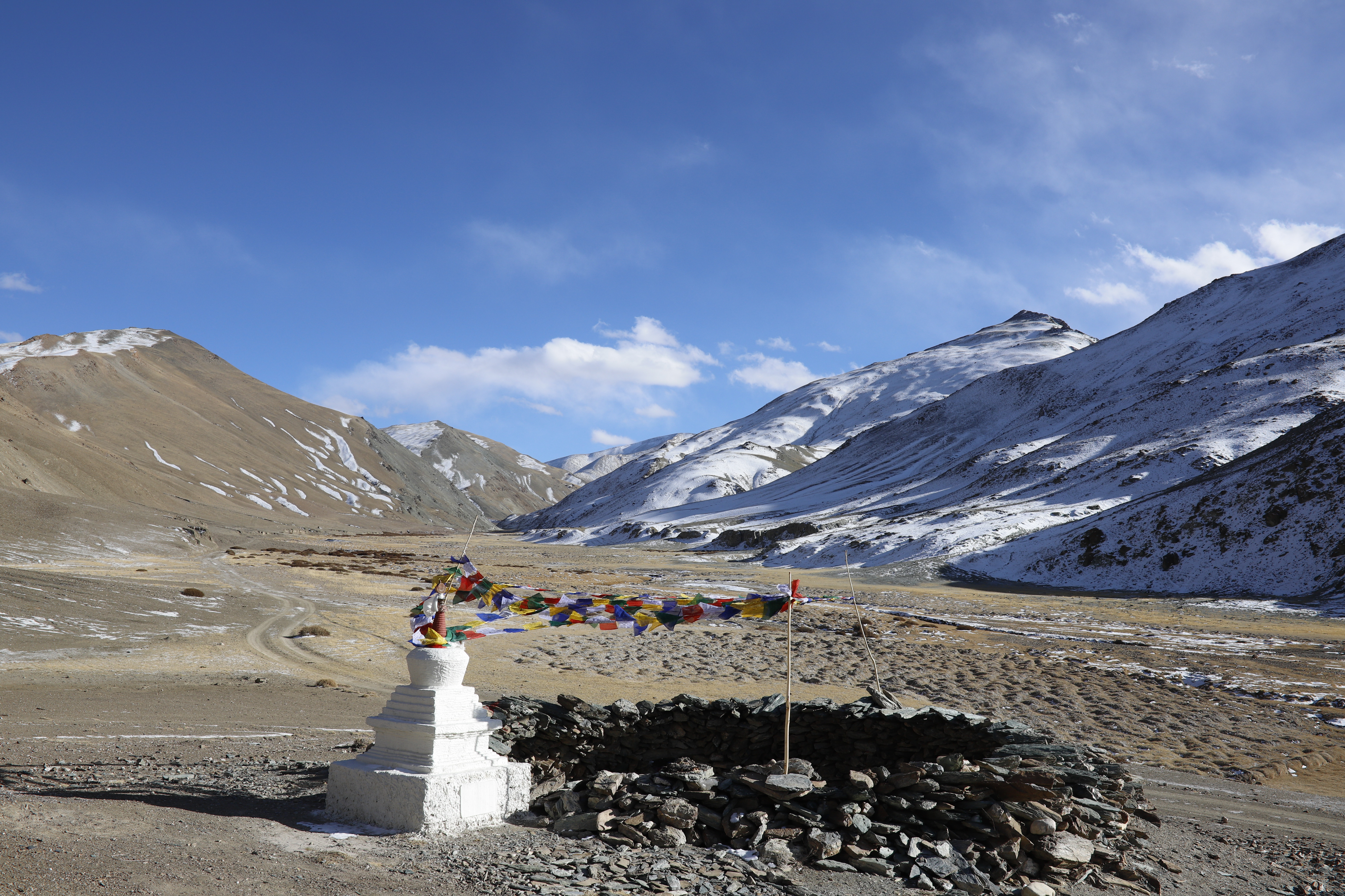 A traditional shangdong, built to trap wolves. Local communities whose livelihoods are affected by livestock depredation often set up traps to capture wild predators. Here is a neutralised shangdong and stupa at Tsaba valley. Photo: Rigzen Dorjay.