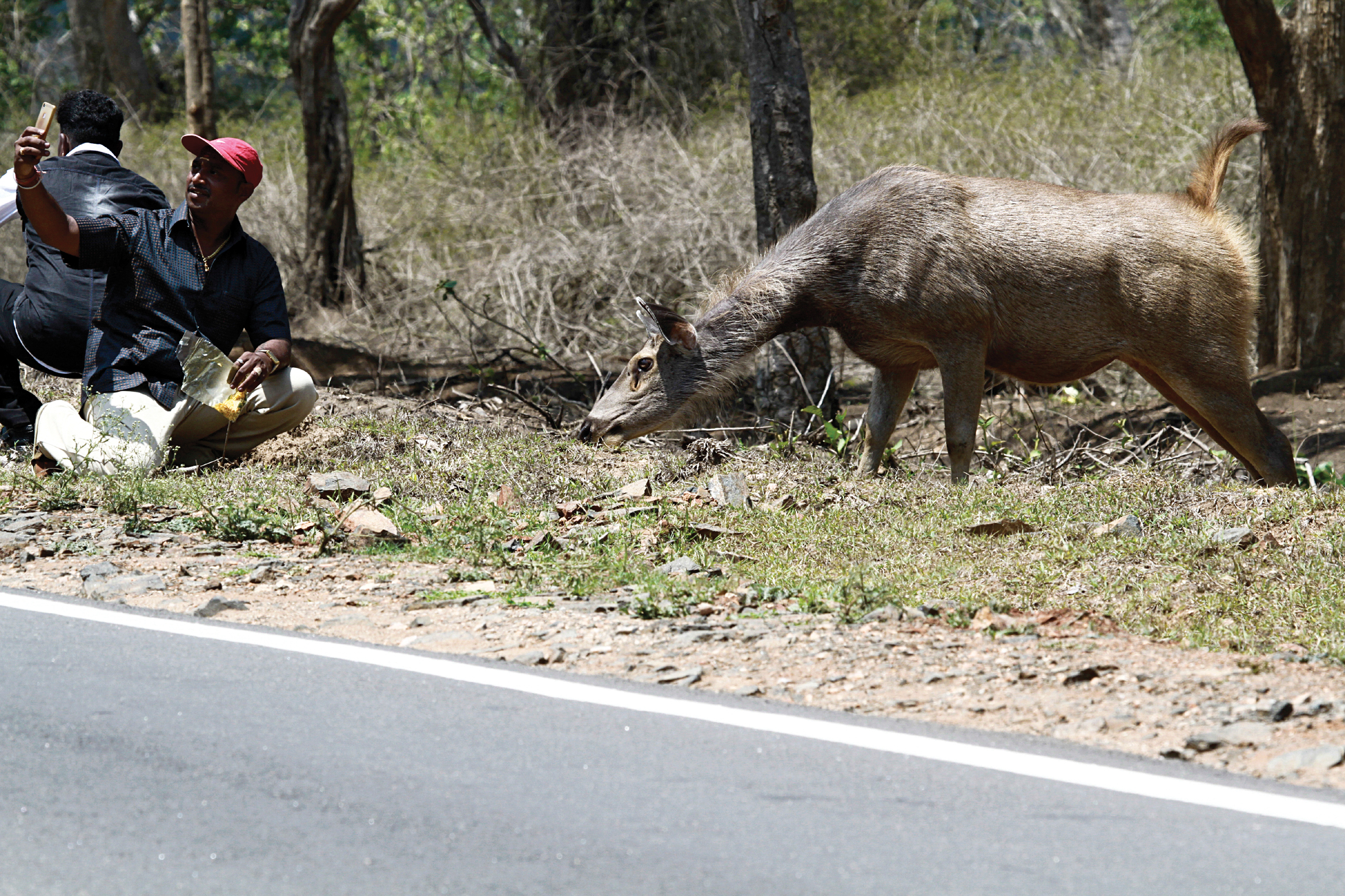 A selfie enthusiast intrudes the sacred space of a sambar along the Mudumalai-Bandipur road. The proliferation of social media has resulted in photographers and tourists increasingly crossing the thin line of wildlife ethics. Photo Courtesy: Muhammed Nizar K.A.The good news is that many organisations are taking a call on ethical photography. Several do not accept nesting bird photographs, as we all know, getting too close to them might reduce their nesting success. The same goes with photographing amphibians and reptiles. They are highly sensitive creatures and taking them out of their natural habitat and bombarding them with heat intense flashes really could affect them in the long term.