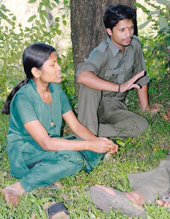 The rhythm of life of both these proud young people who had become increasingly alienated from the forests of their ancestors, recently underwent a dramatic change – for the better. Working with the Periyar Tiger Reserve authorities, both young people were enrolled in an exercise that sought to tap their innate knowledge of the forest and their own culture to enhance the visitor experience of the very large number of tourists who visit Periyar each year. After receiving training in how to communicate their intimate knowledge of the forest, they began to guide school and college children through Periyar as guides. Latha and Aneesh are two of the 18 proud members of Periyar’s Tribal Heritage Ecodevelopment Committee. They are trained nature interpreters and guides and are a respected part of Periyar’s forest protection force. This earns them a livelihood and an honoured place in their own society. If you go to Periyar today, if you are lucky, Latha or Aneesh may take you on a green walk, a border hike, bamboo rafting or an anti-poaching foot patrol through a forest they know intimately and love dearly. While most of their community is being distanced from their forests, these two young naturalists have made the journey back home to where they belong and they swear they will never allow anyone to destroy or degrade Periyar as long as they live.